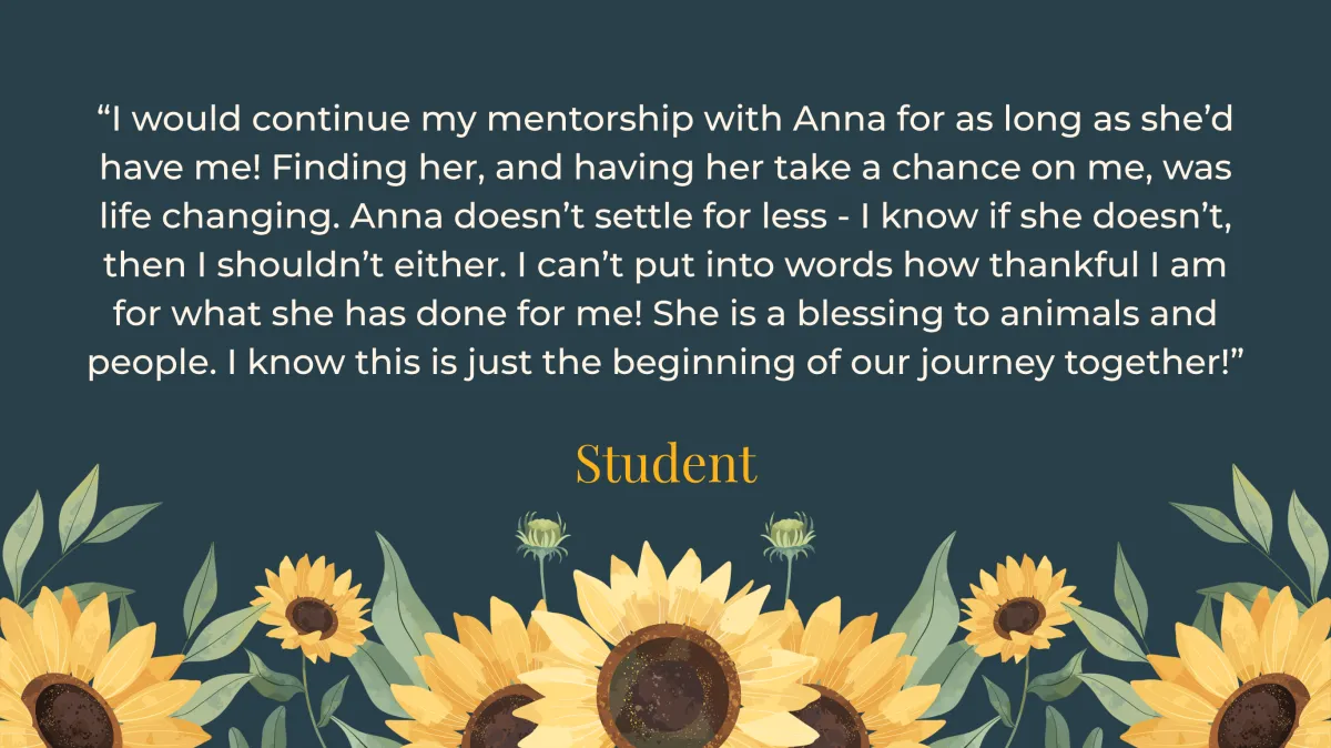 Yes! In 2025, I was contacted by a young professional who requested that I serve as her mentor for several months. I was happy to do so! After evaluating her needs, I crafted an individualized mentorship curriculum full of topics carefully chosen to both educate and inspire her. I am so grateful that she was brave enough to contact me with her initial idea - it didn't take long before we were looking forward to our weekly meetings!